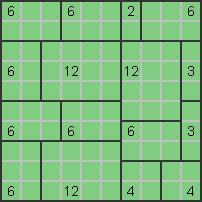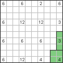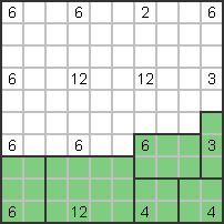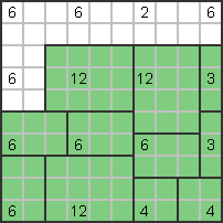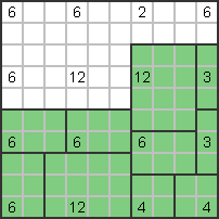 The number 12 next to it must be horizontal (3x4), the number 6 at the bottom left must be vertical